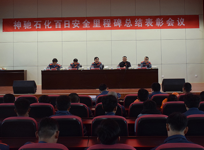 2018年11月8日,石化公司“百日安全裏程碑”總結表彰會(hui) 議在餐廳二樓大禮堂舉(ju) 行,石化公司總經理張鬆光、杜邦項目經理黃海濤和其他領導及員工代表等共180人參加了表彰會(hui) 議。