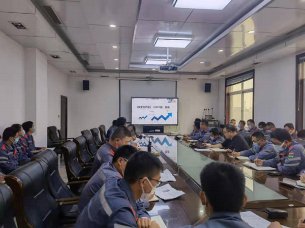 新《安全生產(chan) 法》將於(yu) 2021 年 9 月 1 日起正式施行,為(wei) 深入學 習(xi) 貫徹落實新《安全生產(chan) 法》,切實樹牢安全發展理念、壓實安全責 任、加強安全生產(chan) 工作,讓全體(ti) 員工正確理解安全生產(chan) 法實施的重要 意義(yi) ,進一步提高全員的安全生產(chan) 意識,強化安全生產(chan) 規章製度的落 實,8 月 21 日在新《安全生產(chan) 法》即將正式施行前夕,石化事業(ye) 部通 過視頻會(hui) 議的形式組織了安全生產(chan) 法宣貫公開課,由石化事業(ye) 部總經 理張鬆光對安全生產(chan) 法進行解讀領學,各部門及各公司負責人、中層 管理人員、班組長、安全管理人員及員工代表參加培訓學習(xi) 。