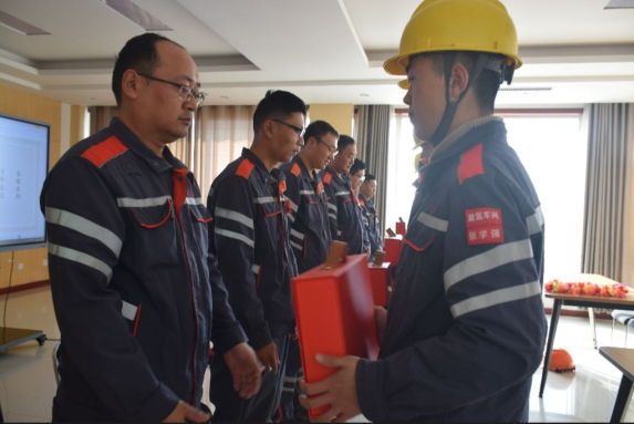 隨後,師傅們(men) 為(wei) 徒弟贈送了精美寶珠筆,寓意著希望他們(men) 能夠書(shu) 寫(xie) 出屬於(yu) 自己的精彩人生。同時,他們(men) 還親(qin) 自為(wei) 徒弟佩戴並整理黃色安全帽,時刻提醒他們(men) 在工作中要牢記安全第一的原則。公司為(wei) 每位師傅頒發了“謝師恩”精美紀念品,以此表達對他們(men) 辛勤付出的感激與(yu) 認可。