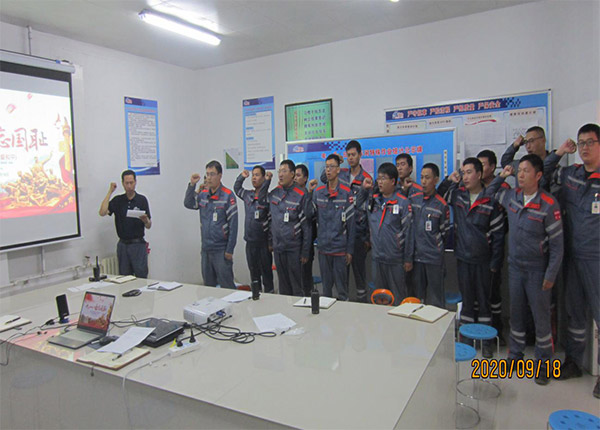 車間員工的一起宣誓更是將全體(ti) 員工的愛國熱情充分點燃,“精忠報國,至死不渝;崇尚生命,尊重安全”的豪邁誓言響徹整個(ge) 空間。