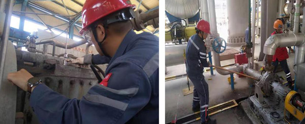 班組員工作為(wei) 我們(men) 現場各項工作的實施者與(yu) 執行者,作為(wei) 對裝置現場最熟悉的人,他們(men) 在這炎炎夏季,揮灑汗水,堅守崗位,不放過裝置的任何一個(ge) 角落,認真巡檢,發現一處隱患,處理一處隱患,為(wei) 裝置的安全平穩生產(chan) 保駕護航,為(wei) 企業(ye) 的安全健康發展砥礪前行。