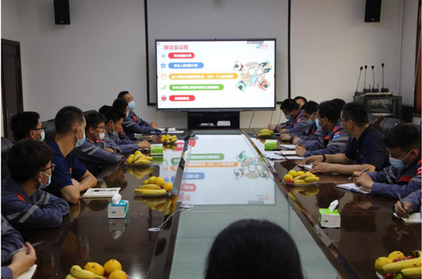 2021 年 8 月 26 日下午 16 時,化工公司舉(ju) 辦了一場溫馨融洽的 麵對麵交流座談會(hui) ,旨在促進員工與(yu) 公司領導直麵交流,切實解決(jue) 員 工工作生活中存在的問題,提高員工歸屬感,激發員工工作熱情。