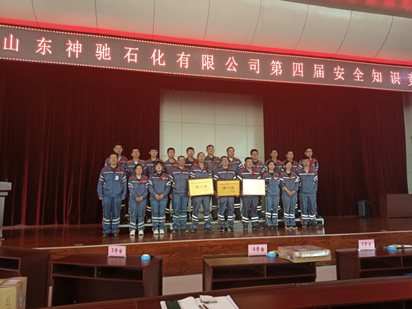 比賽結束,我們(men) 有幸邀請王總為(wei) 我們(men) 做賽後總結,並為(wei) 我們(men) 提出寶貴意見。計分員將分統計完成,獲得第一名的為(wei) 脫氫車間代表隊,第二名的是儲(chu) 運車間代表隊,第三名的是動力車間代表隊,分別邀請王總以及文化分委會(hui) 張主任為(wei) 其頒獎,並合影留念。