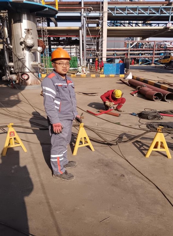 重催反應再生器換料腳過程中,現場環境複雜惡劣,他不怕髒、不怕累、不怕苦,在有限空間內(nei) 進行進行測量工作;在施工作業(ye) 過程中,嚴(yan) 格監督施工質量,高質量完成再生器料腳更換工作,“多麵小能手”是對他工作的肯定。