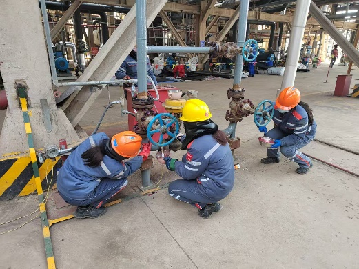 再後來我們(men) 又進行了保養(yang) 螺栓、清理雨排地溝、汙排地溝、裝催化劑等工作,為(wei) 裝置的檢修工作做好後勤保障,時光荏苒,檢修工作即將完成。這一路走來,每一項任務都飽含著大家的心血與(yu) 汗水。保養(yang) 螺栓時,我們(men) 不放過任何一個(ge) 細節,確保每一顆螺栓都除鏽刷油;清理地溝,麵對油汙與(yu) 淤泥,沒有人退縮,隻為(wei) 裝置能有順暢的排水係統;裝催化劑環節,更是全神貫注,嚴(yan) 格操作,力求精準無誤。