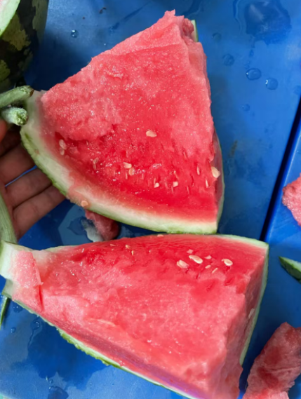 得到班長的通知,員工們(men) 都圍攏過來,看著剛剛分發的新鮮的西瓜,原本疲憊的臉上露出了驚喜的笑容。有人情不自禁的伸手掂量一下西瓜的重量,有人伸手輕輕撫摸一下光滑的瓜皮,有人伸手彈了一下滾圓的西瓜就為(wei) 了聽一聲那清脆的聲響,有的員工已經開始想象著西瓜入口時的清甜多汁。班長熟練地拿起刀具,將西瓜放到案板上,隨著“哢嚓”一聲,鮮紅的瓜瓤露了出來,汁水順著瓜皮緩緩流淌,空氣中立刻彌漫開一股清甜的瓜香。