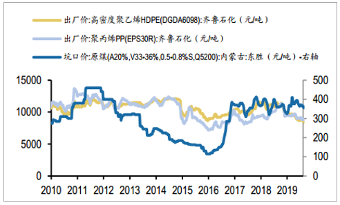 聚乙烯和聚丙烯價(jia) 格與(yu) 煤價(jia) 也有較強相關(guan) 性